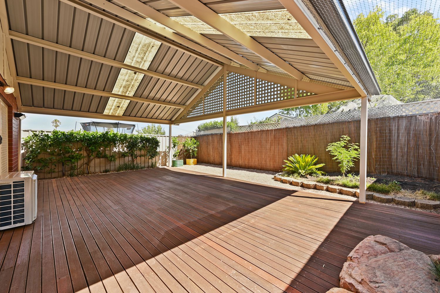 • Covered outdoor entertaining with pitched roof and timber decking