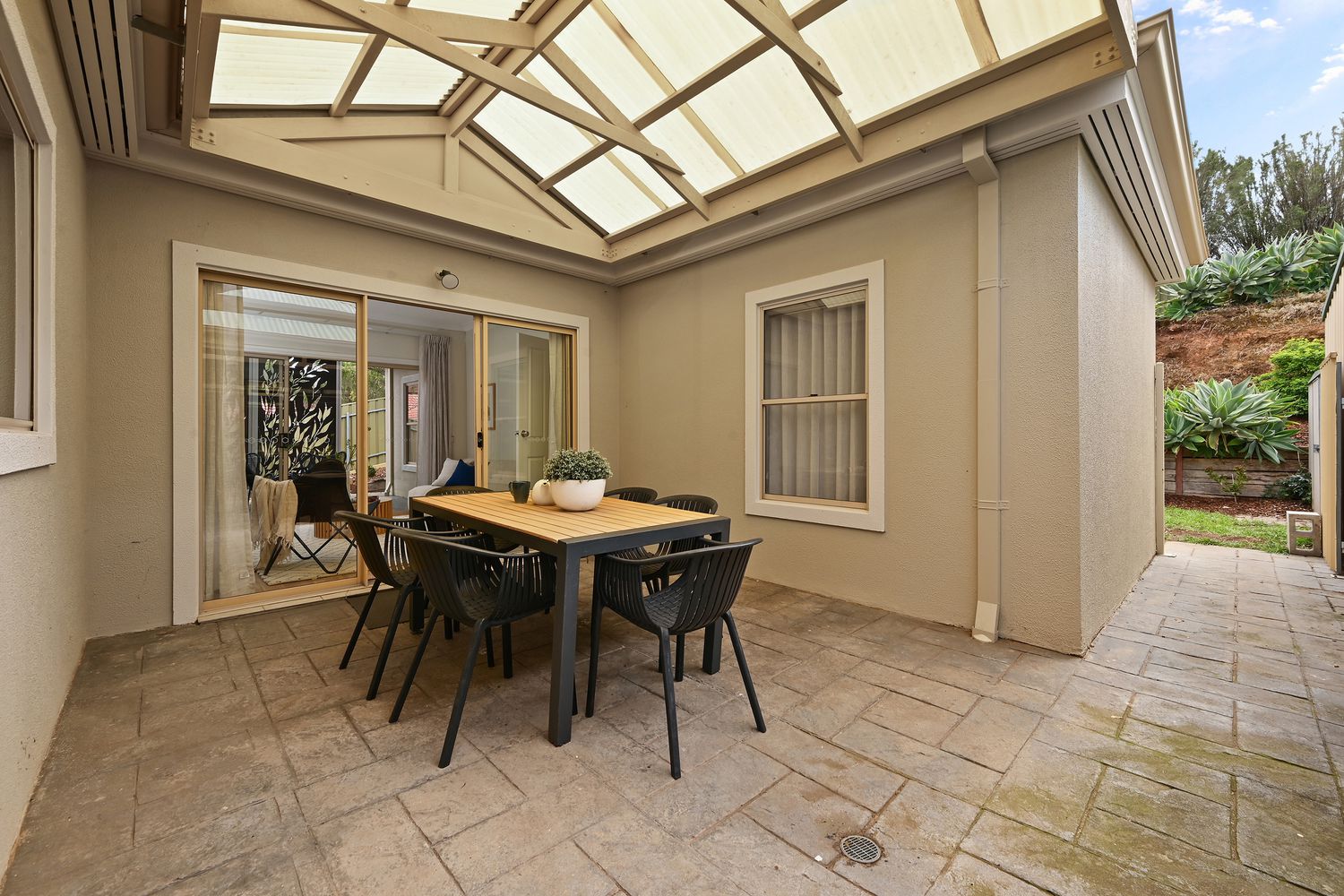• Multiple outdoor entertaining zones — pergola + covered area