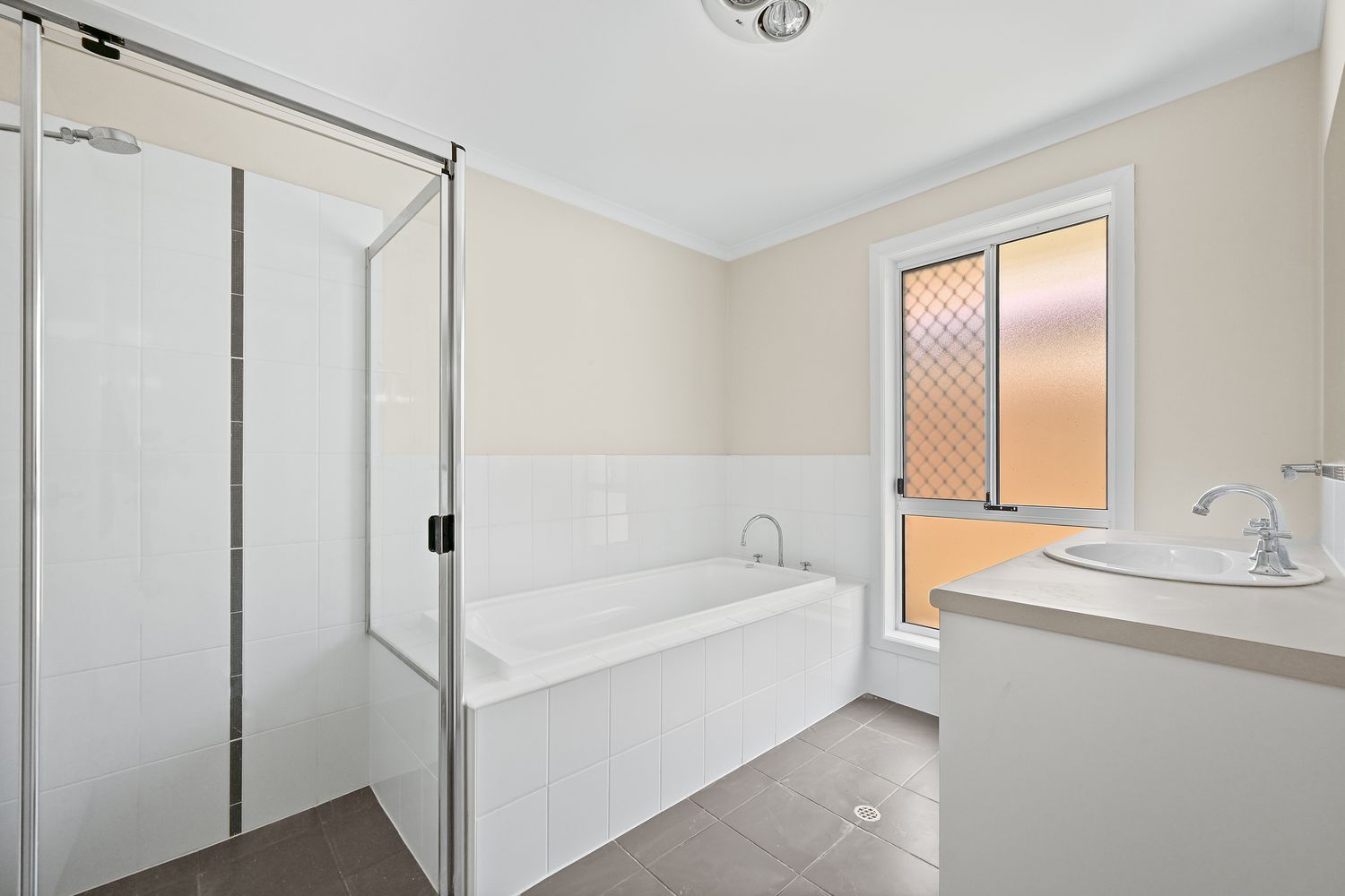 • Ensuite with “3 in 1” heat lamp/exhaust fan/lights and handy storage