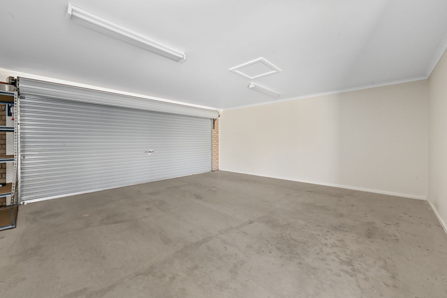 • Rear garage with concrete floor, automatic roller door (remote), and extra storage space