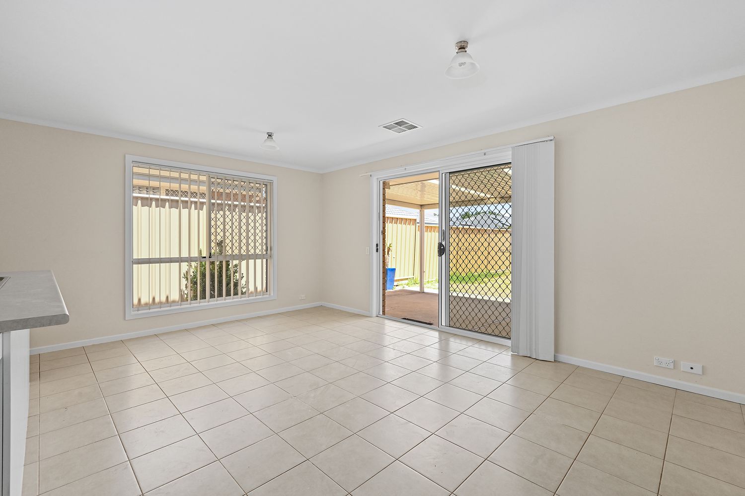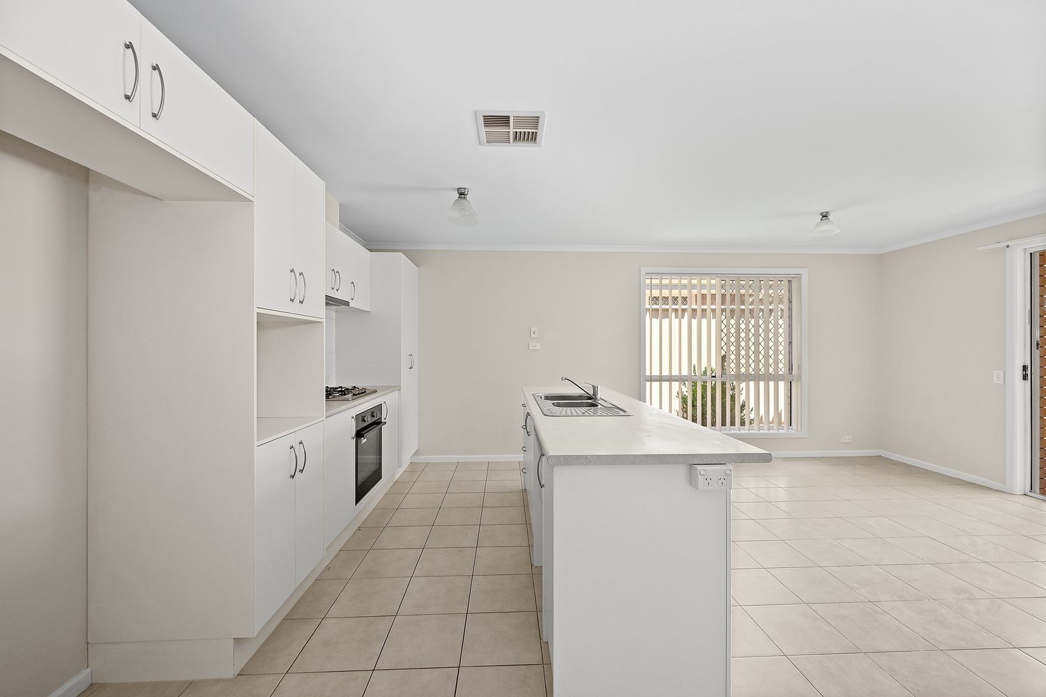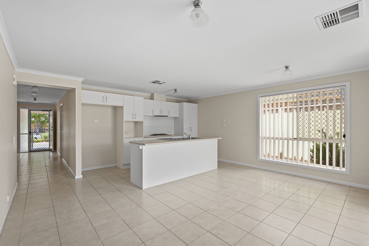 • Open-plan kitchen/dining/living with tiled floors and TV antenna