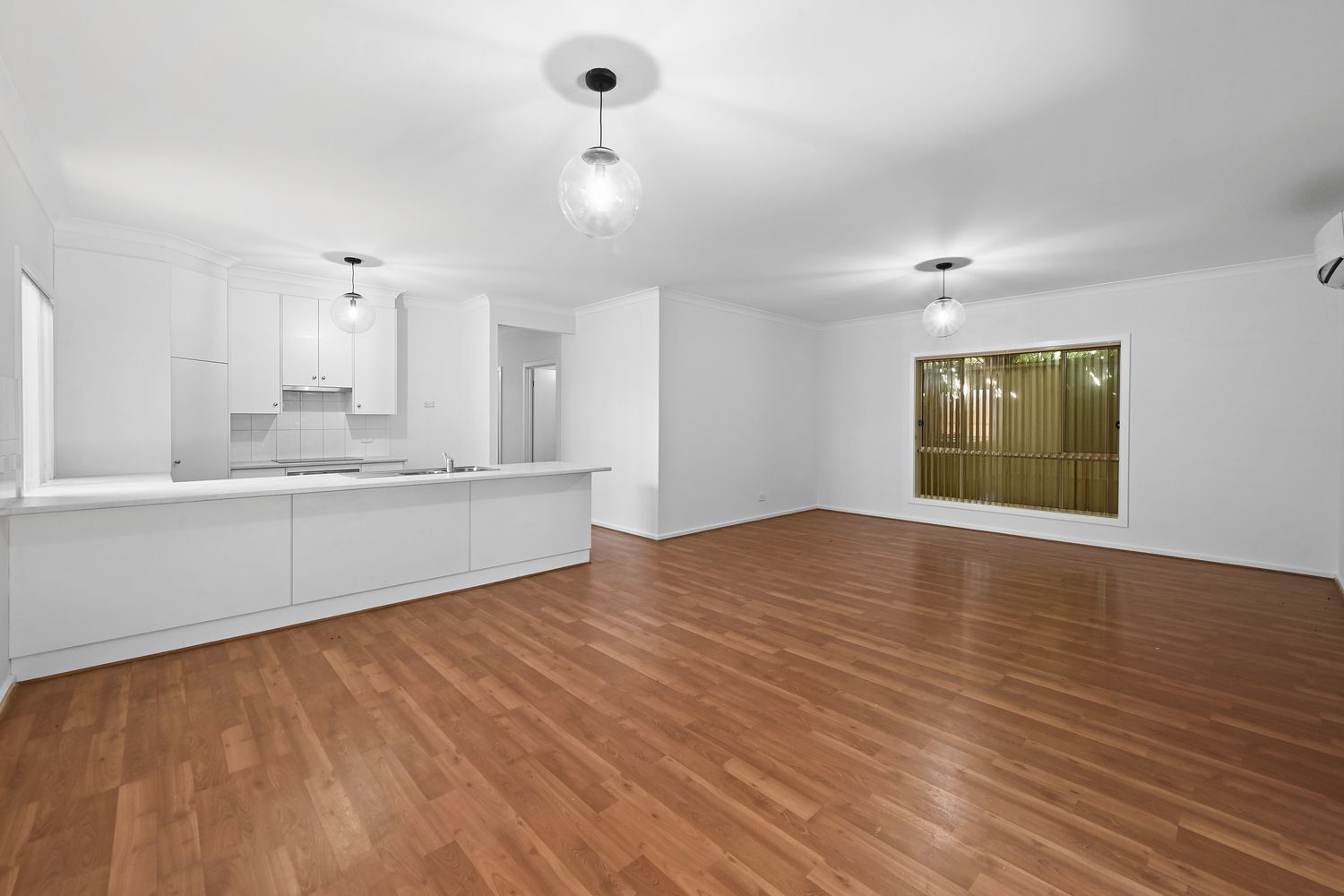 • Floating floorboards through hallway and open-plan kitchen/living